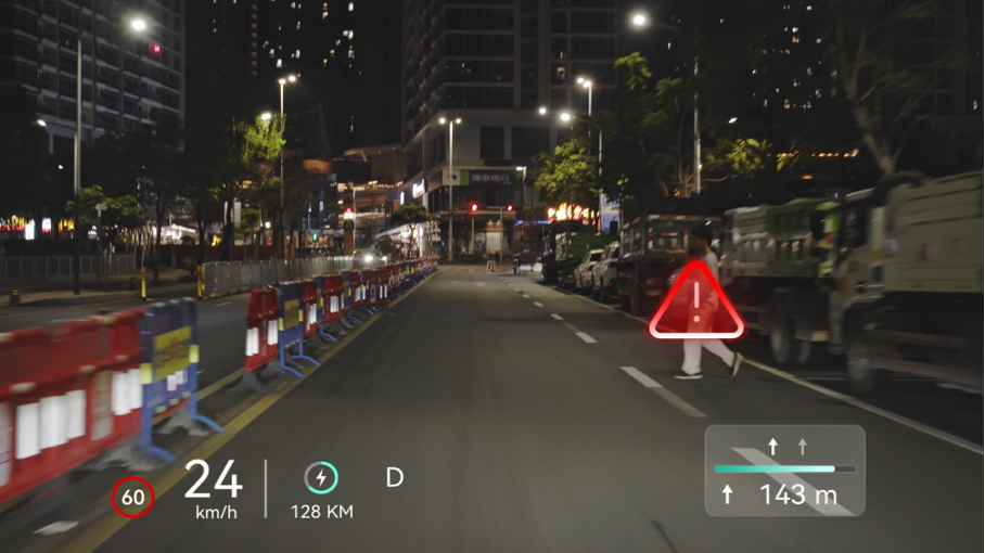 AR-HUD 可以清楚提示夜晚「鬼探头」物体|图片来源:华为